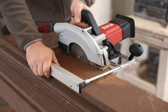 - Réglage en continu des profondeurs de coupe de 0 à 60 mm, avec rail de guidage jusqu’à 54 mm.